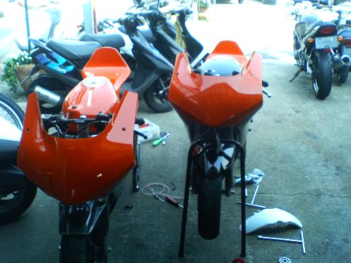 カウルを仮付け 1人で作業してたので 他の作業の写真撮る暇が無かった |